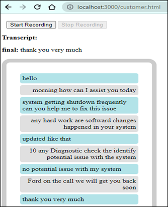 1. Getting Customer Voice Input from HTML and Transcribing using Web Speech API The customer initiates voice recording by clicking the “Start Recording” button on the customer.html page.